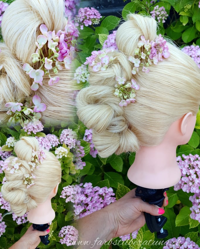 verschiedene Sorten Hortensien - Haltbarkeit in den Haaren sehr gut.